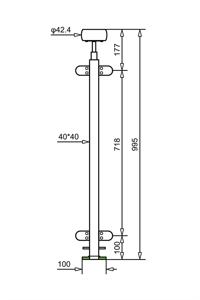 Midtstolpe rekkverk toppmont